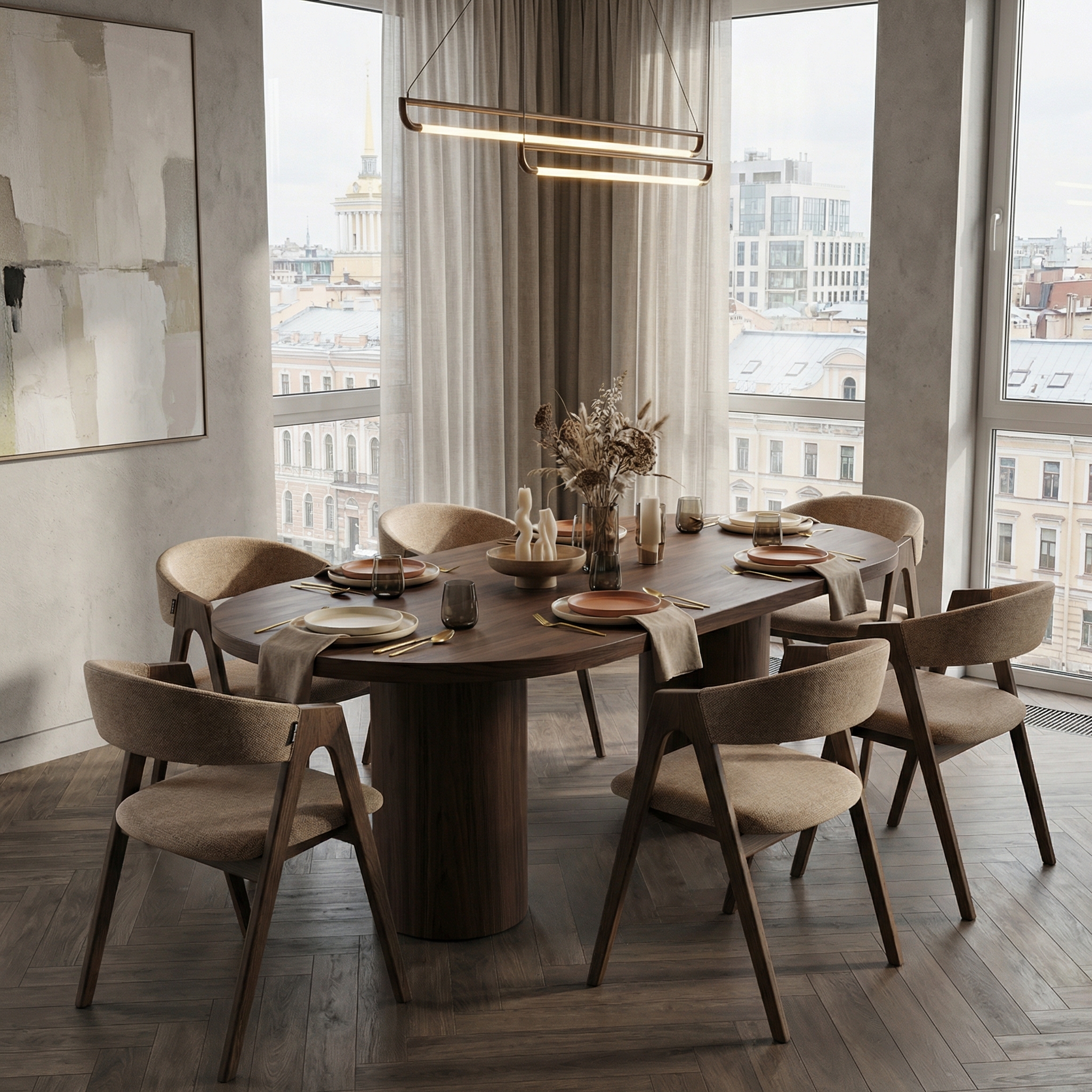 - Эргономика: Две ножки открывают максимум свободного пространства. Посадка гостей становится более гибкой, а уборка под столом — легкой. Это решение, где эстетика не спорит с практичностью, а работает на нее.