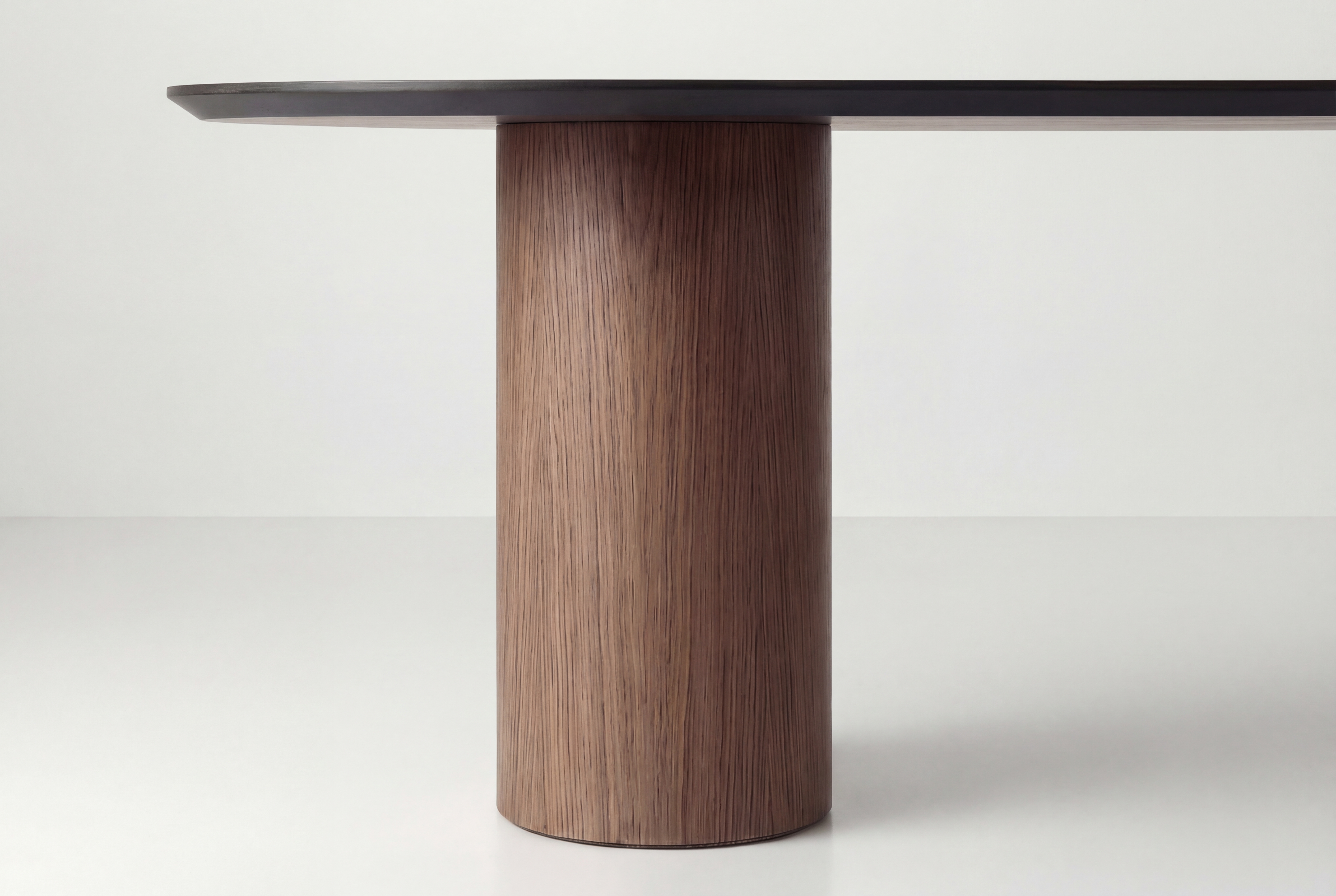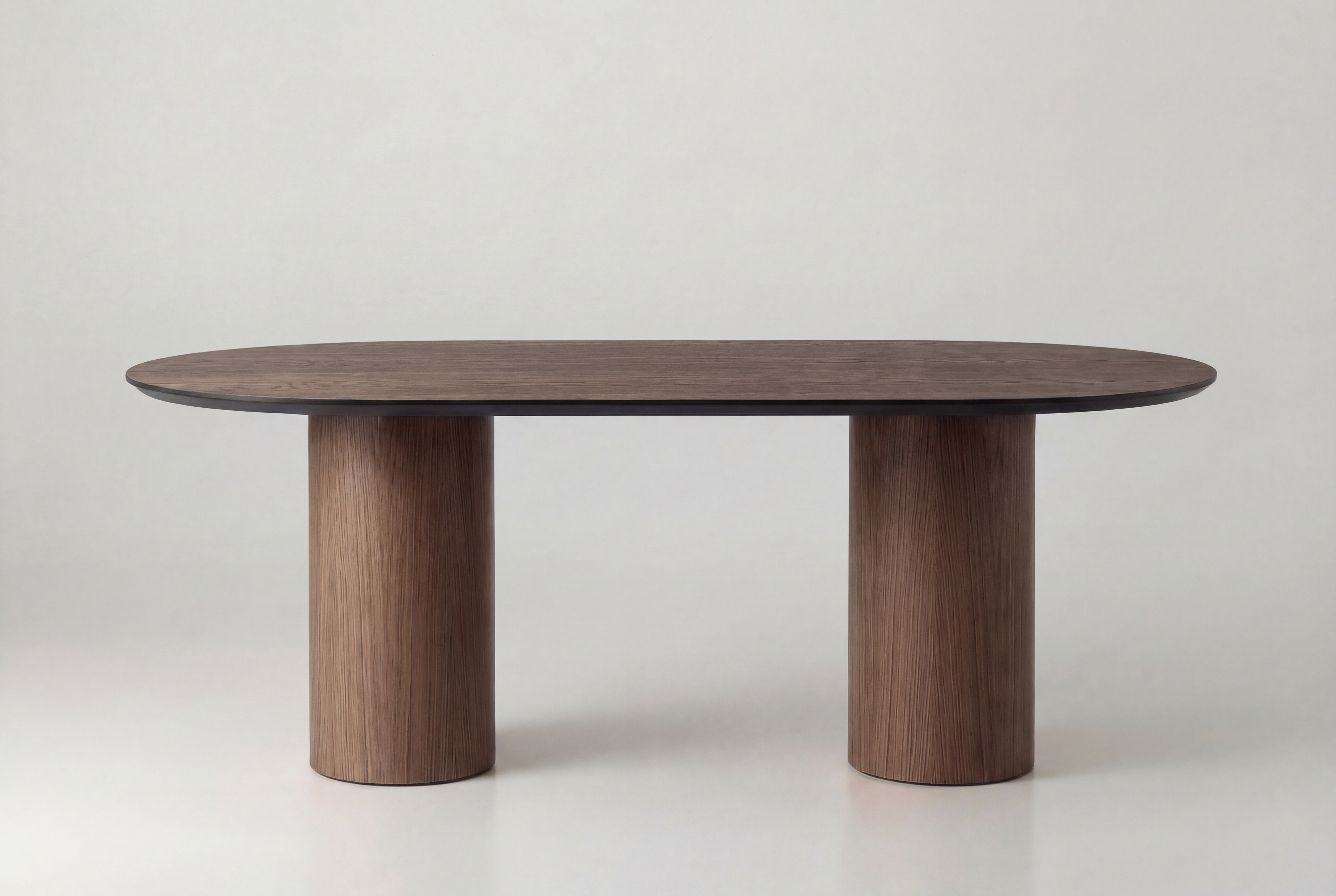 - Ритм опор: Два цилиндра задают композиционный ритм, поддерживая вытянутую геометрию овала. Это архитектурный минимализм в чистом виде.