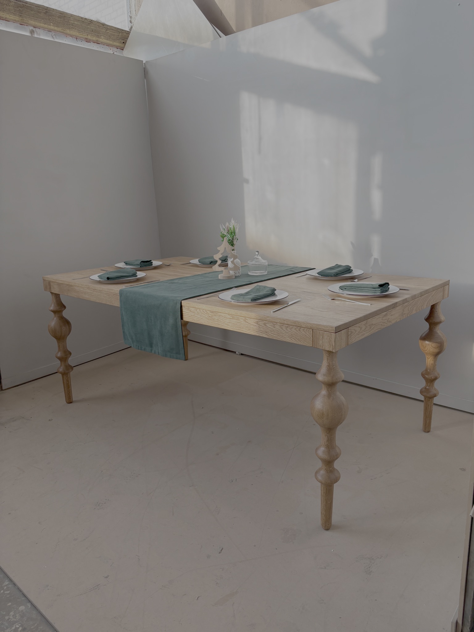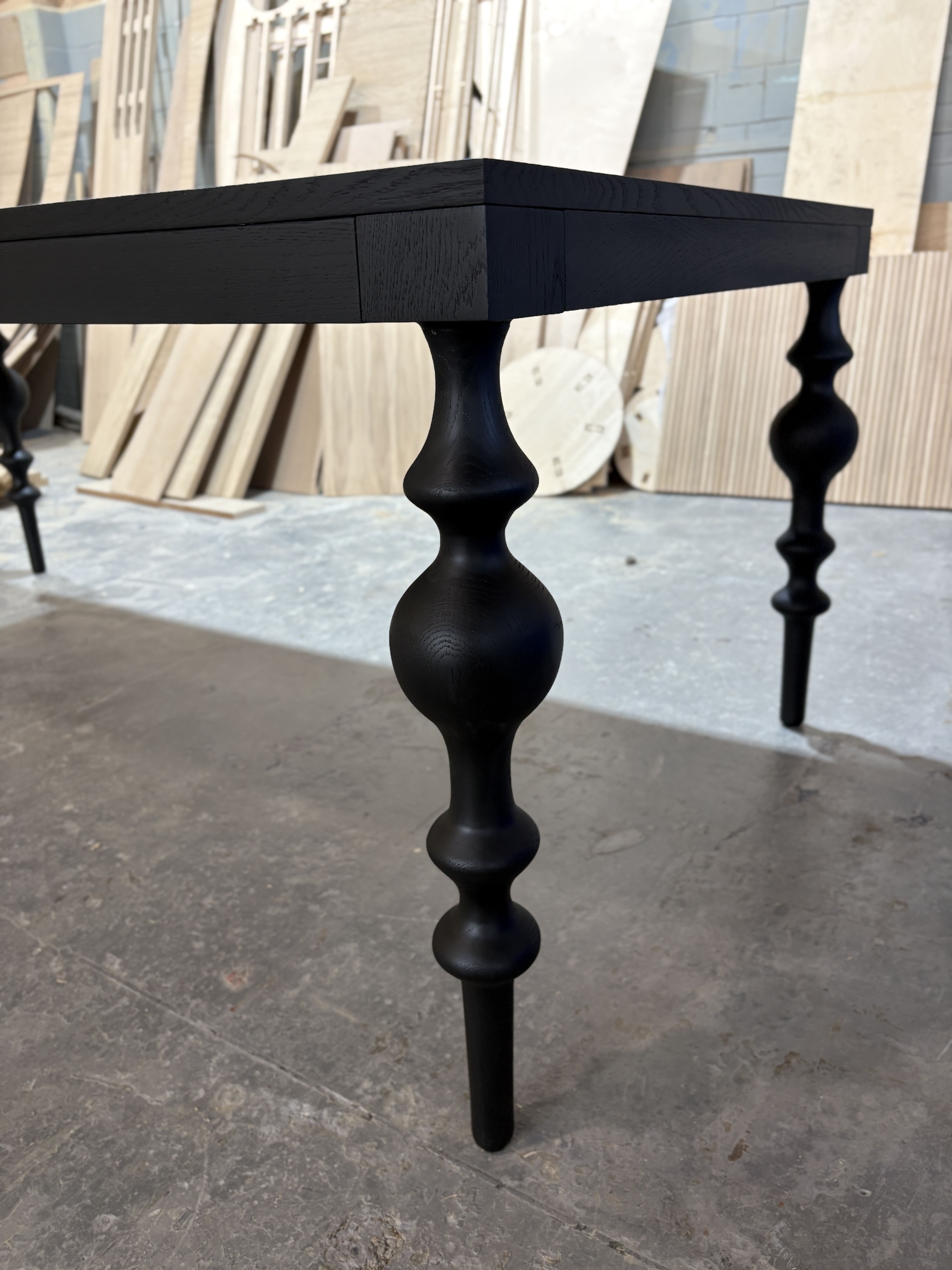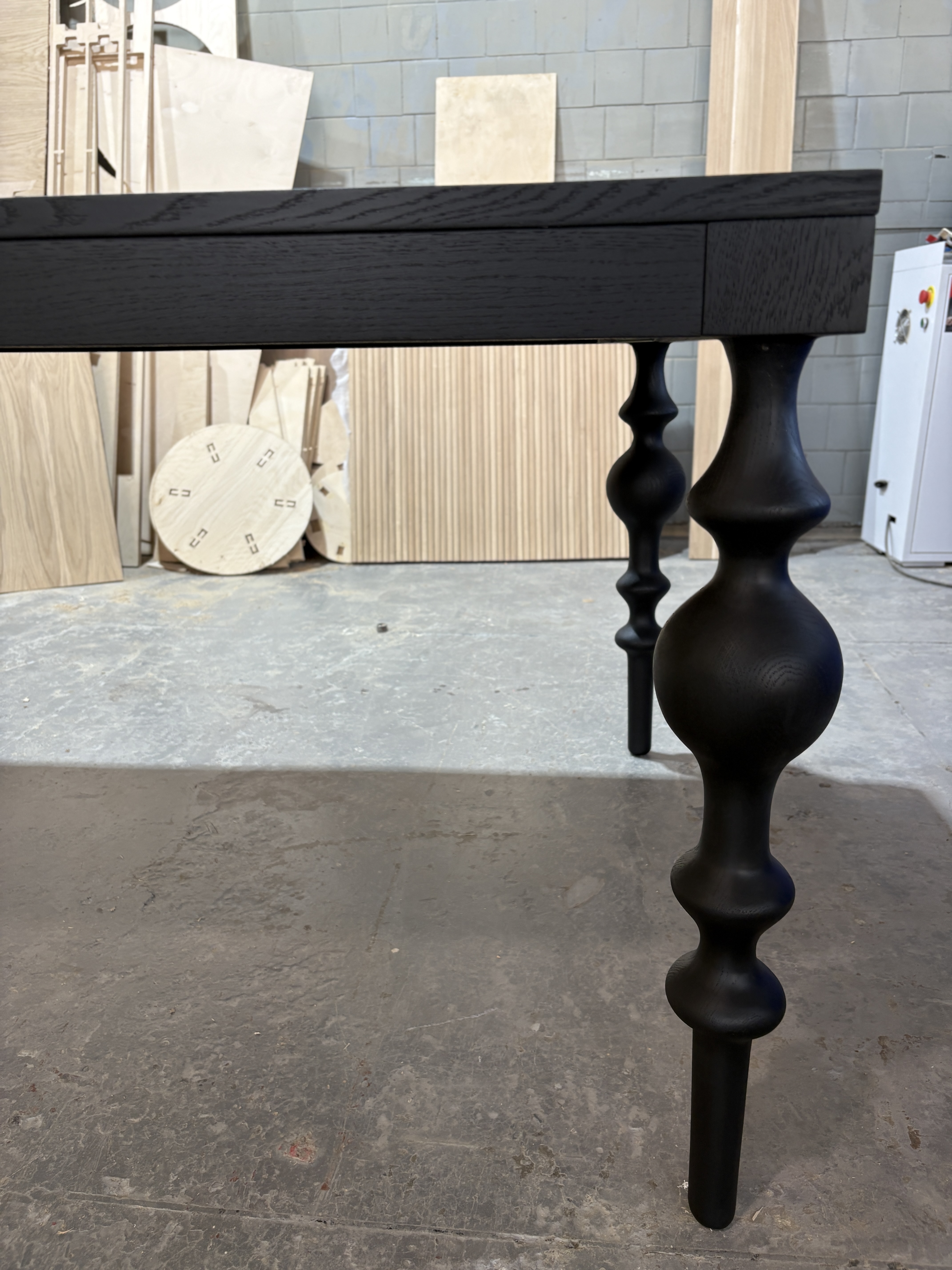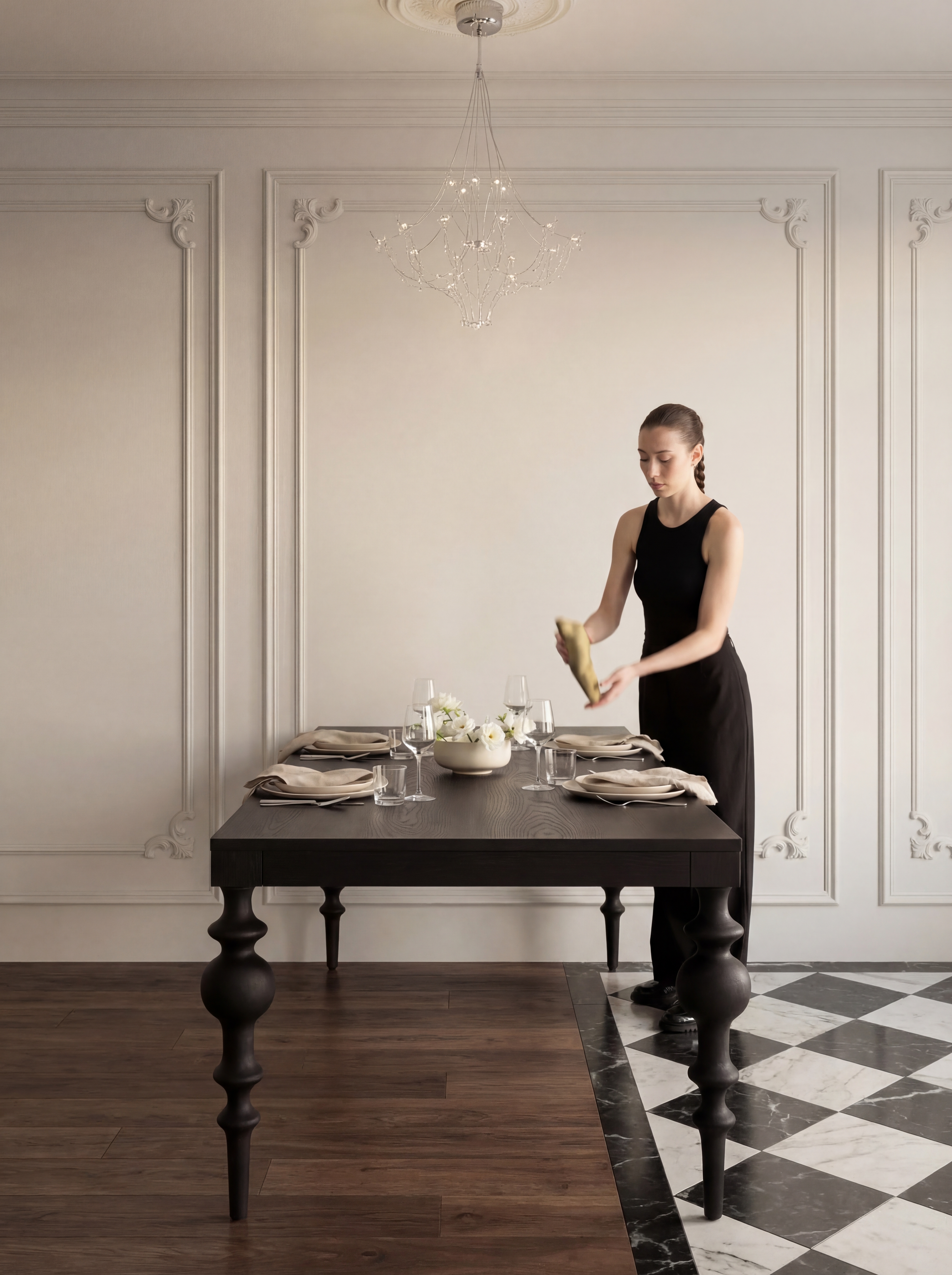 Строгая оправа – прямоугольная столешница с острыми углами, которая придает винтажной ножке современное и уверенное звучание, не давая ей выглядеть слишком старомодно.
